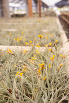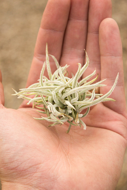 Tillandsia crocata is a charming air plant variety known for its compact, clump-like growth. It features narrow, curly leaves that are typically a bright white and can have a soft, fuzzy texture due to fine trichomes. The leaves grow closely together, creating a lush and full appearance. Also it produces stunning fragrant yellow flowers when in bloom!