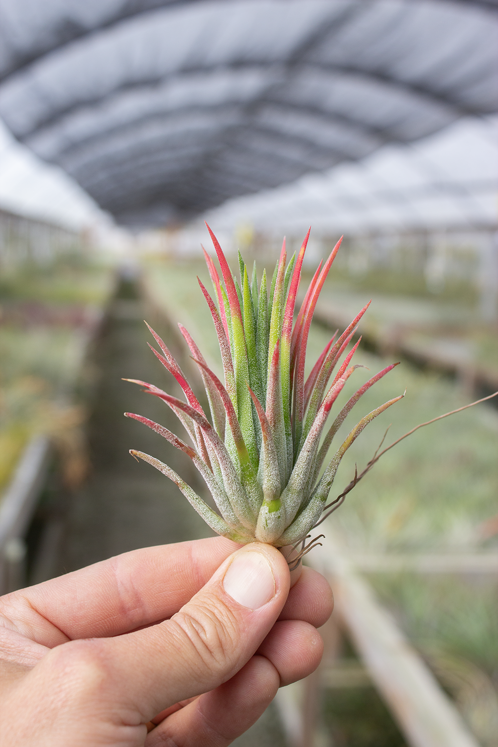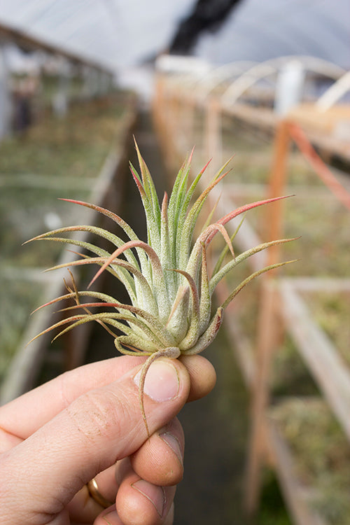 An unusual cultivar of Ionantha. This plant blushes a bright pink color when in bloom. Plant usually comes without color.