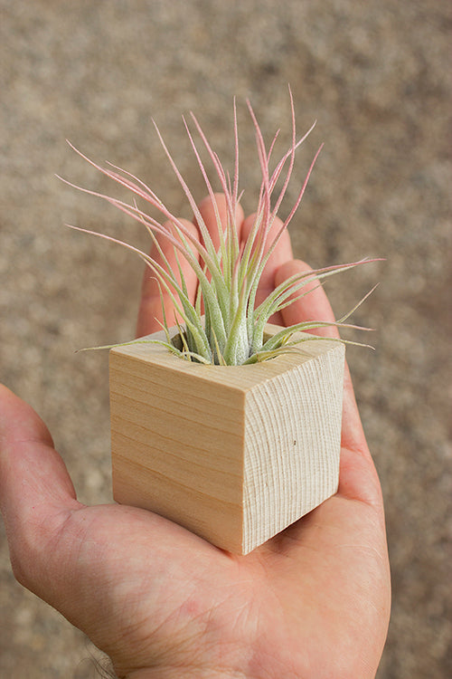 Ionantha Scaposa has a much different form than other varieties of Ionantha. Also it produces a spike unlike other forms of Ionantha. This plant will come enhanced with pink color.