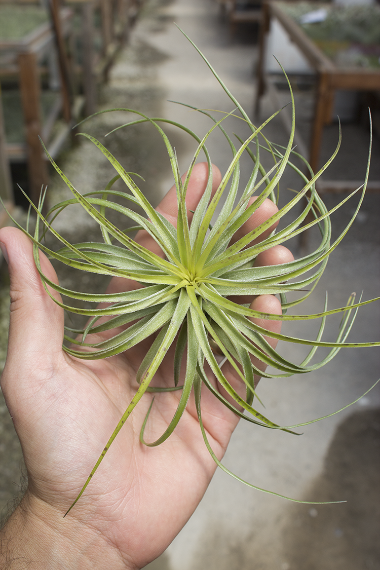 Stricta Lite Green has a similar bloom color as Stricta Silver, but its foliage is much lighter. It also has a different form than other strictas. The larger sizes are larger in span and much fuller. Also as it gets mature it has a tendency to curly over!