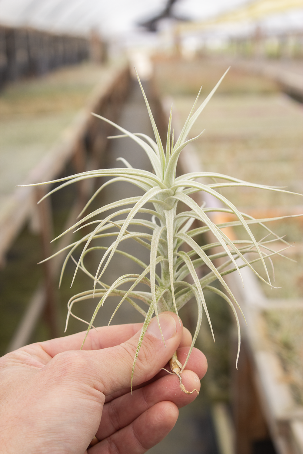 It thrives in bright, indirect light and requires regular misting or soaking to maintain its health.