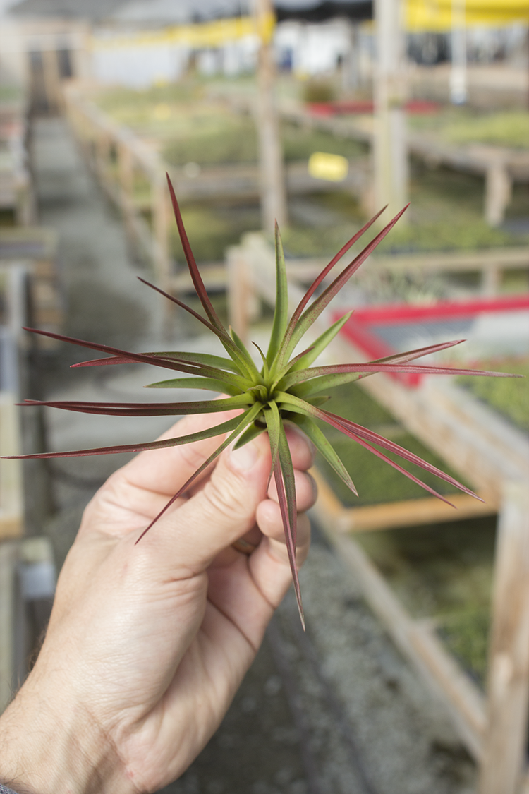 This variety has a spiky texture. It produces either a yellow or red bloom. When grown in the right light and temperature the plant gets a burgundy color.
