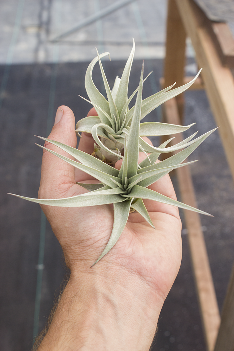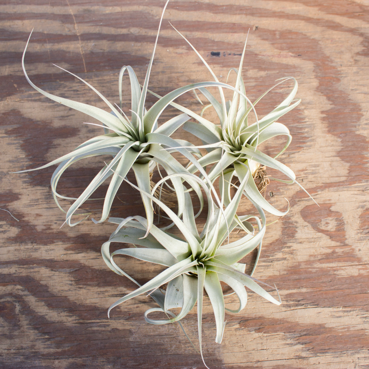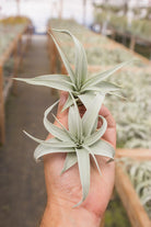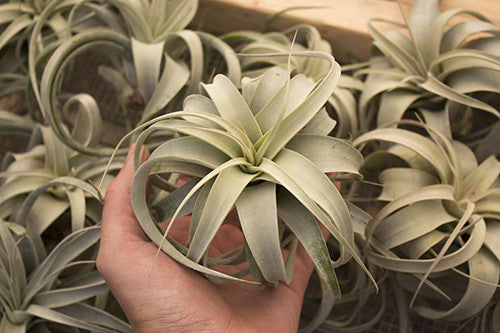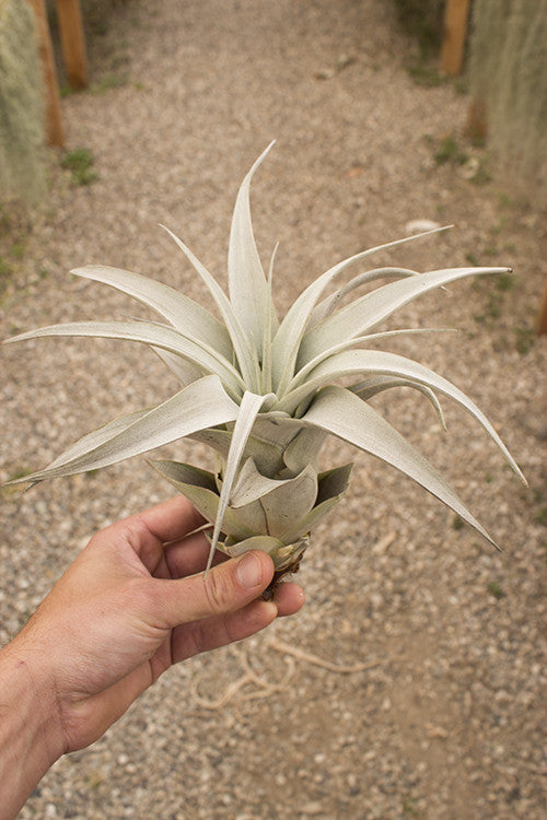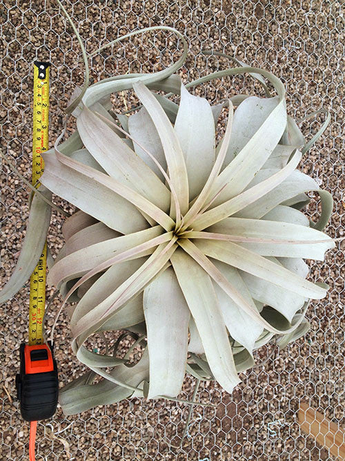 Also known as the King of Air Plants, Tillandsia Xerographica is a staple variety. It grows large, as large as 36" wide! It produces a multi branching red and yellow bloom with violet flowers. The plant also has a curled over look with a silver color!