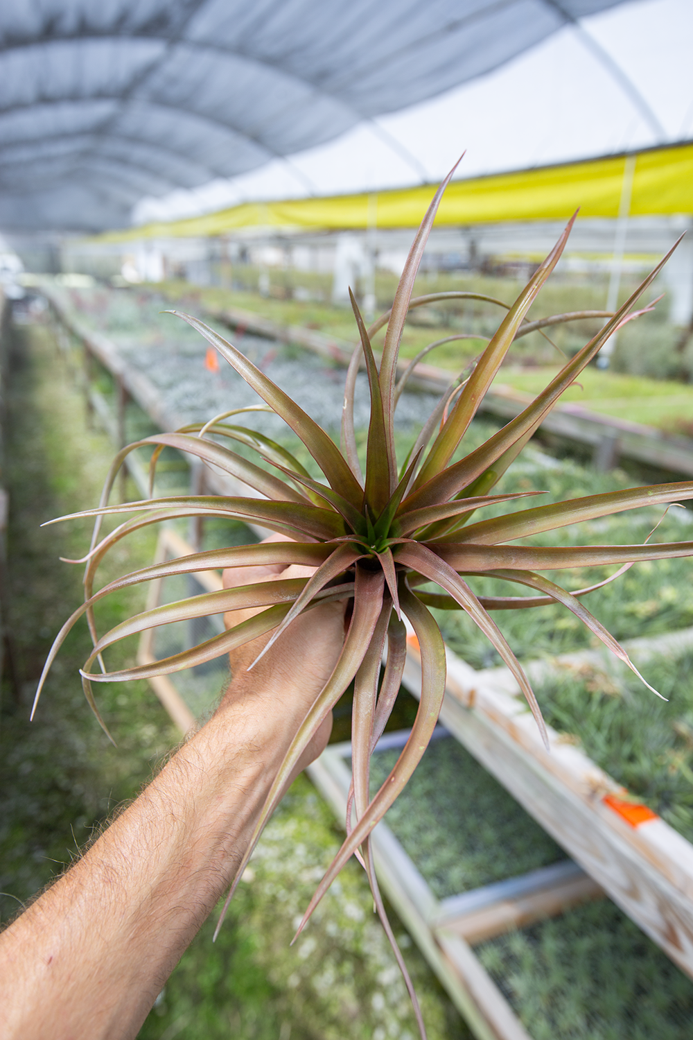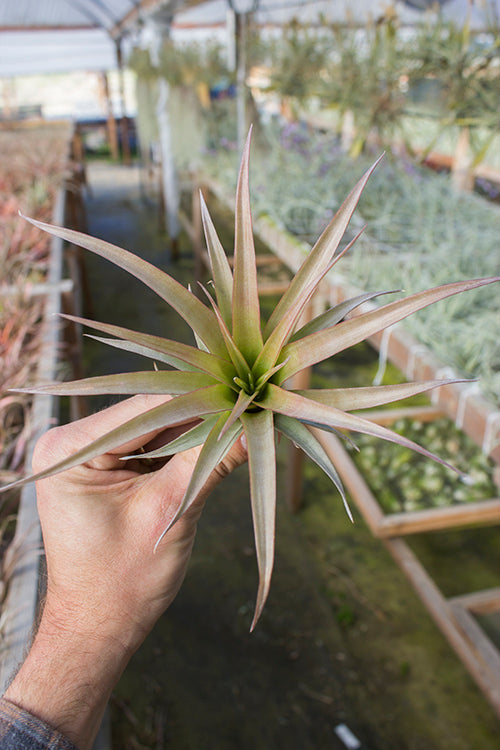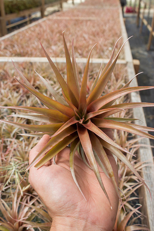 This form of Capitata has bright translucent foliage. It grows up to 12-14" in diameter. When in bloom it crowns and colors just like a Guzmania. Also sold as Capitata Red. Larger sizes will have color from November - February!